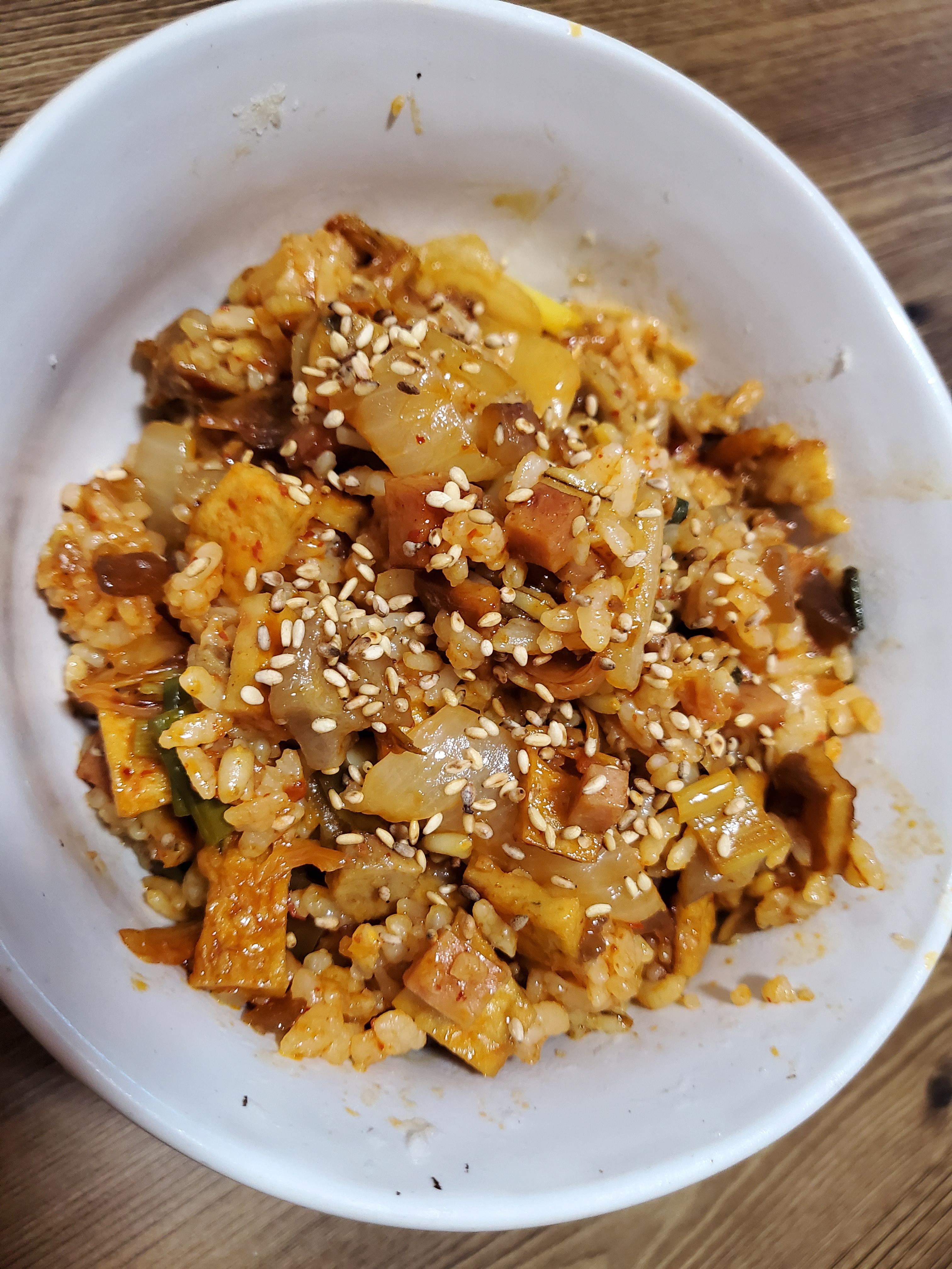 김치국물로 볶은 족발 스팸 김치볶음밥